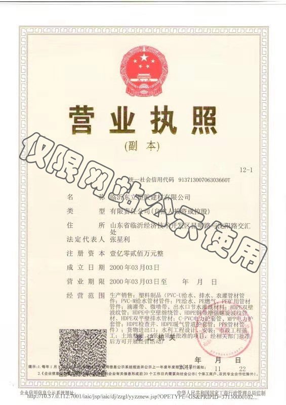 臨沂東立塑膠建材有限公司始建于2000年,專業從事PVC、PE給排水工程管道、特種行業塑膠管道和排水用大口徑滾塑檢查井系列產品研發、生產、銷售和服務為一體的綜合性企業。公司位于江北最大的物流集散中心—山東省臨沂市,注冊資本1.02億元。